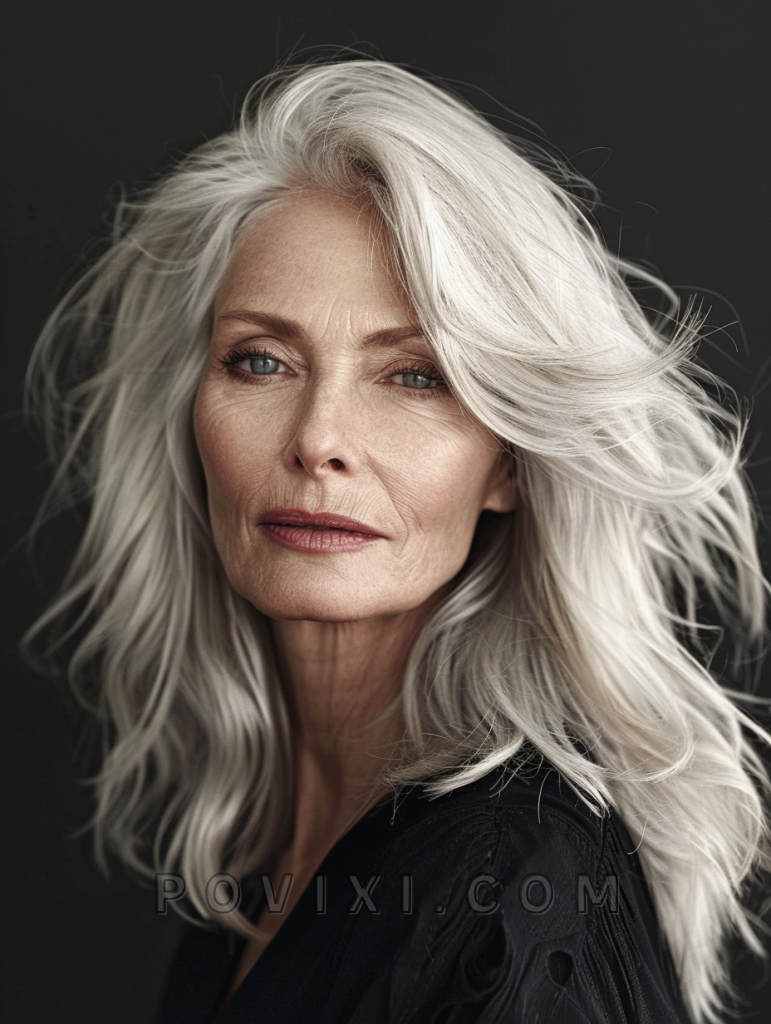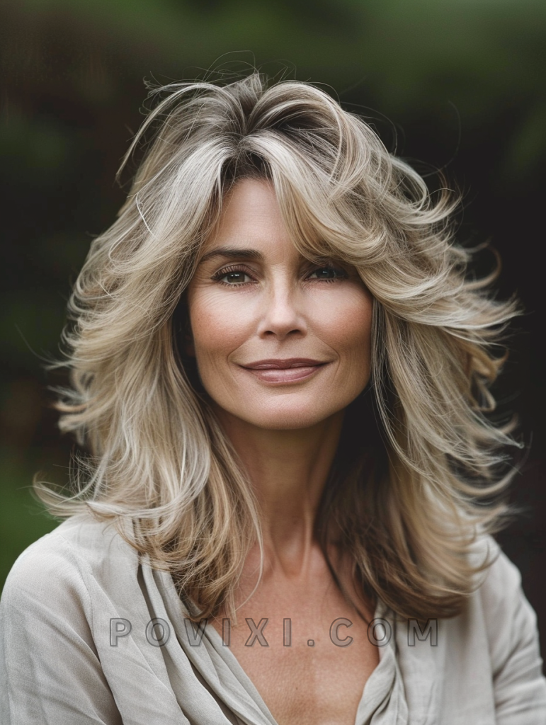 Swept-back layers offer a graceful style that pulls the hair back from the face, highlighting the cheekbones and eyes. This look is ideal for women over 40 with medium to thick hair, providing a flattering lift and sophistication.