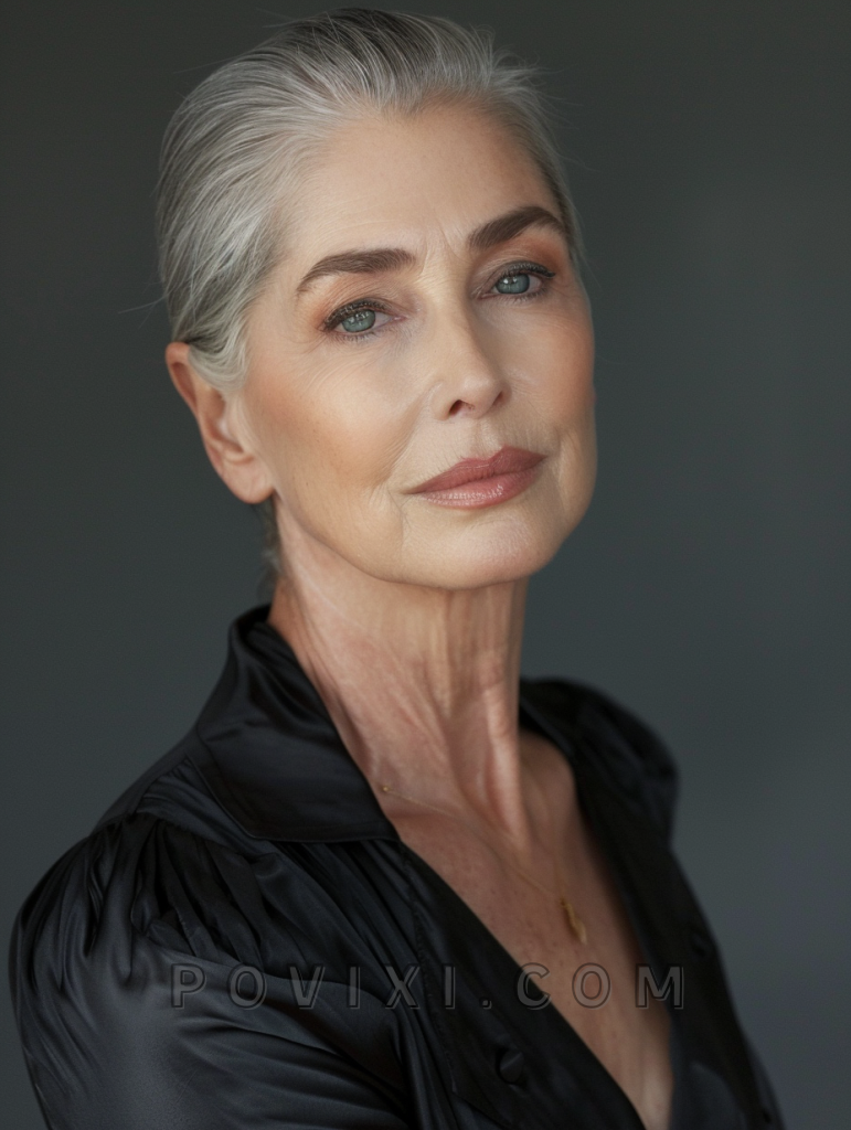 Embrace the power of slicked-back hair, which exudes confidence and sophistication. This style is particularly effective for women over 40 attending formal events or in professional settings. It suits all face shapes and focuses attention on the eyes and cheekbones.