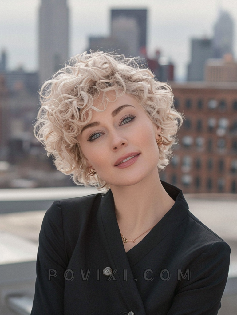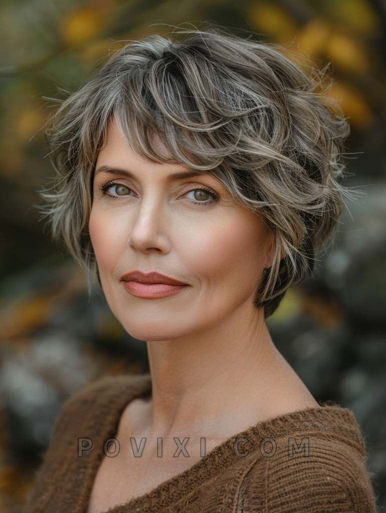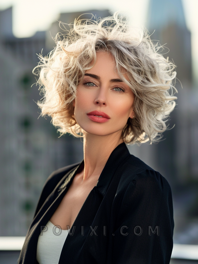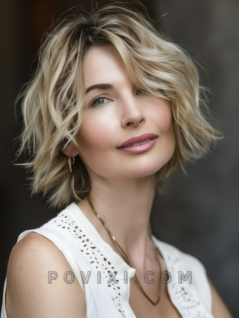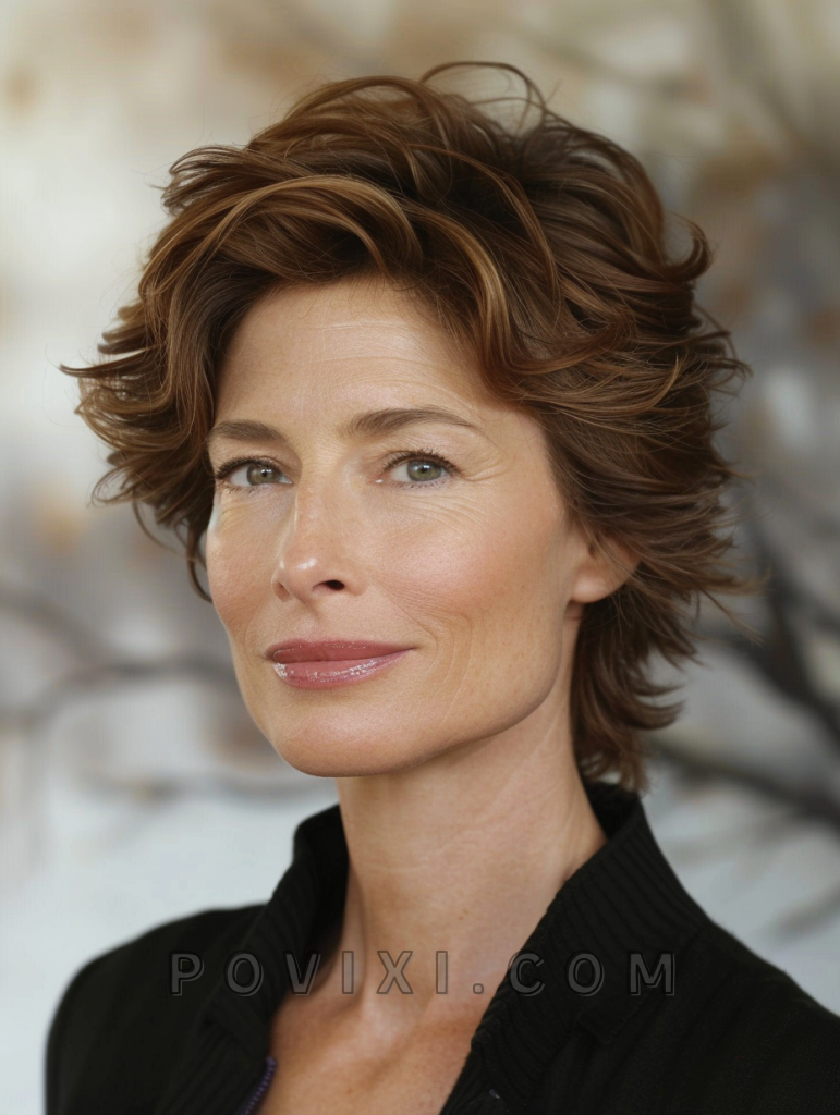 For a softer look, opt for short tousled waves. This style works well for women over 40 looking for a romantic and feminine hairstyle.