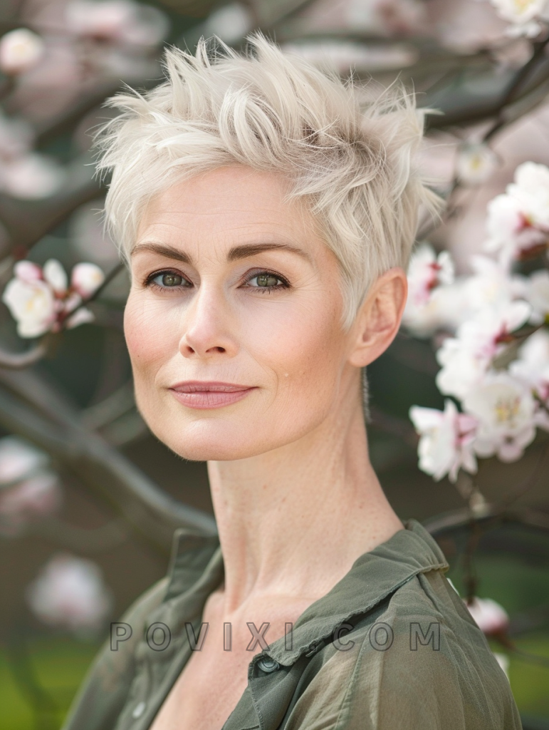 For women who like to make a statement, the edgy spiked look is perfect. This style is daring and youthful, suitable for all face shapes, and allows for personal flair in styling.
