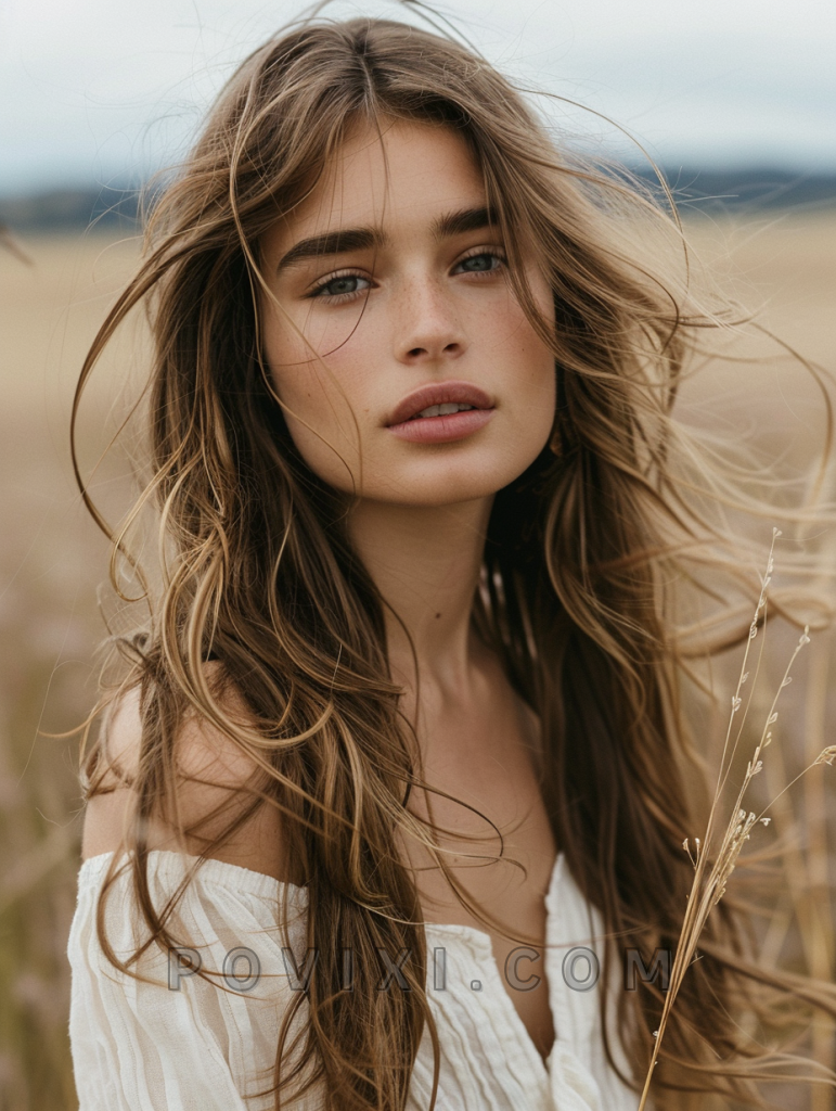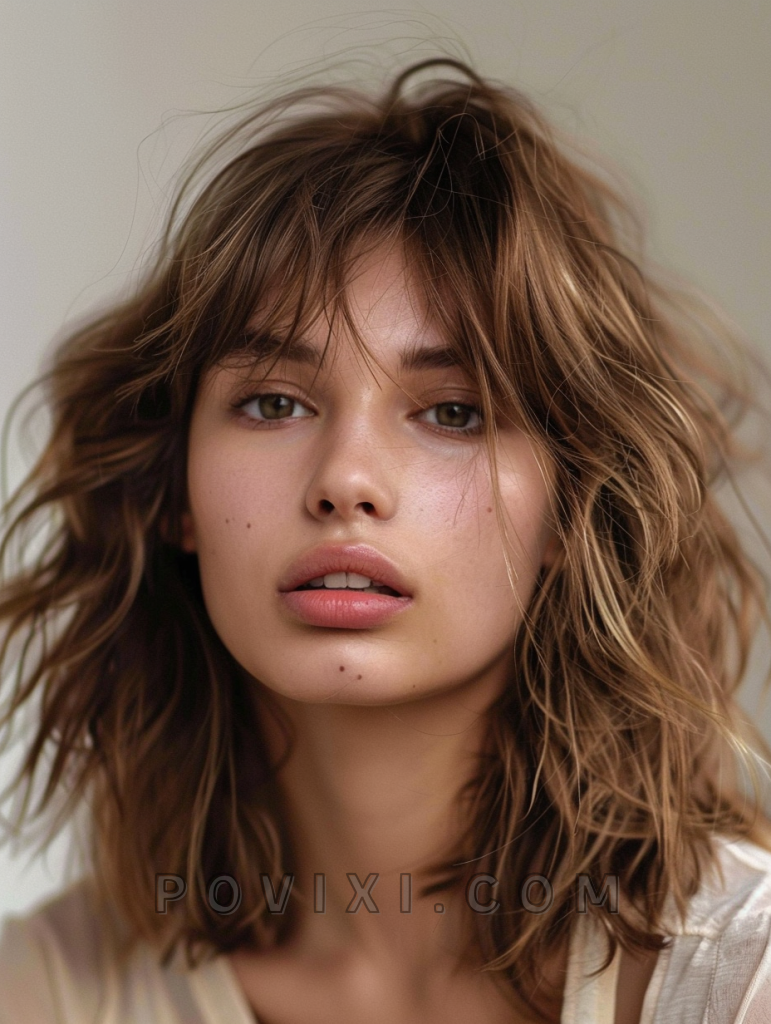 This hairstyle plays on the allure of slightly unkempt, romantic layers that seem effortlessly styled. Perfect for those with medium hair to long hair, this cut introduces various lengths that come together to create a relaxed, dreamy appearance, particularly suited to wavy hair or lightly curly hair.