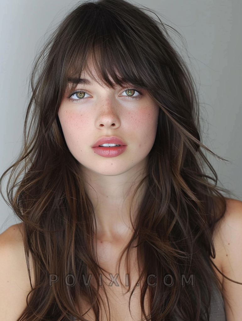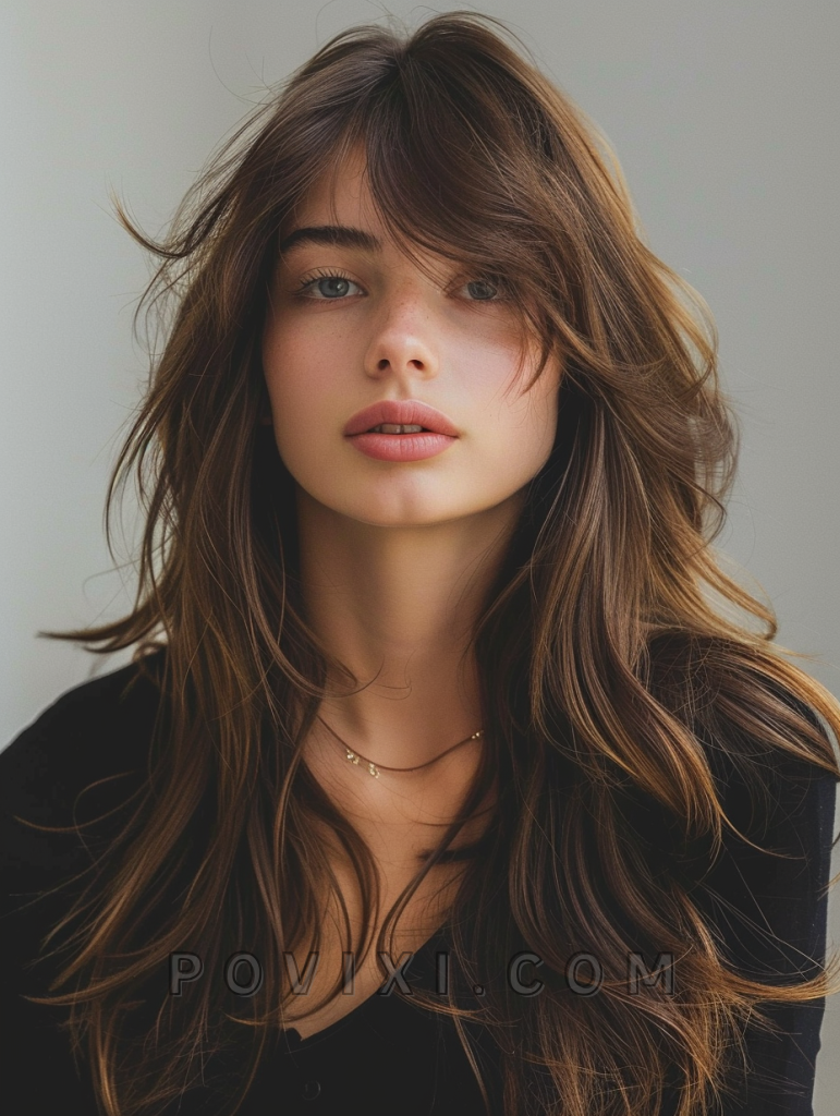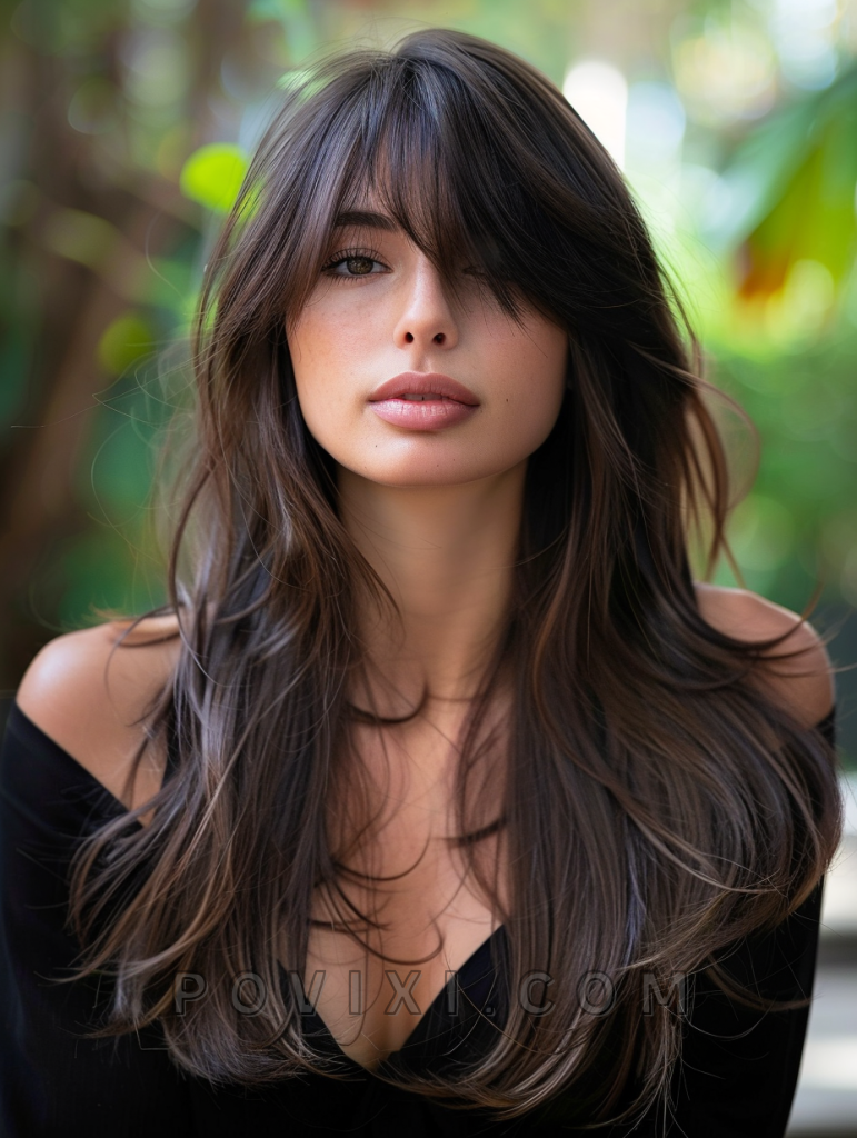 Combining long layers with bangs is a nod to vintage styles, updated for today’s fashion. Whether you opt for blunt or curtain bangs, they can completely transform your look by adding character and framing your face.
