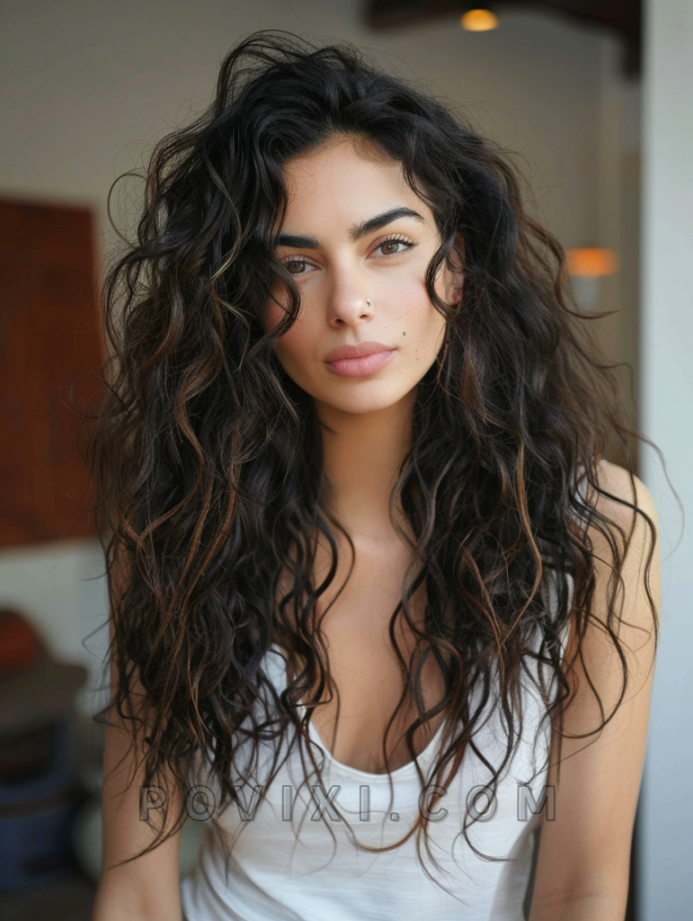 Curly-haired beauties can enhance their natural texture with strategically placed layers. This style reduces the pyramid effect often seen in curly long hair, distributing the volume evenly for a harmonious look. It’s a fantastic choice for both casual and formal settings.