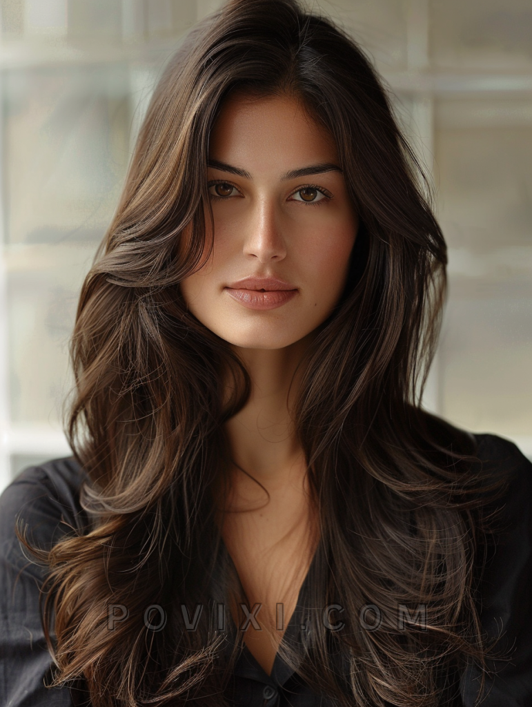 For a more refined look, consider long layers that maintain a sharp, clean edge at the bottom. This style is great for those with straight hair or fine hair, giving a neat, polished appearance that’s both sleek and sophisticated.