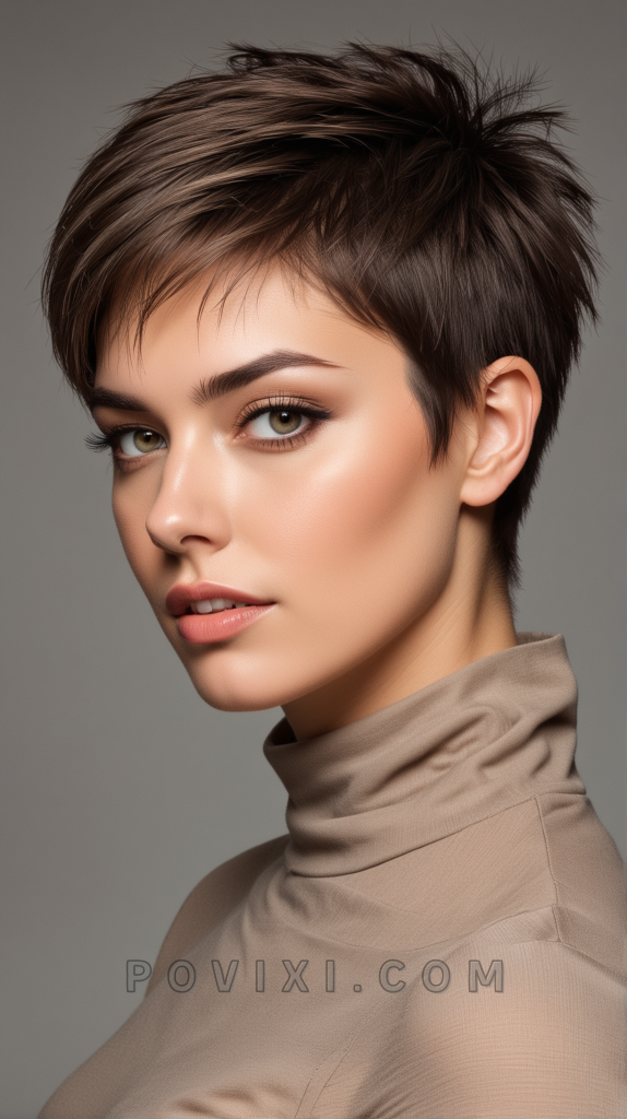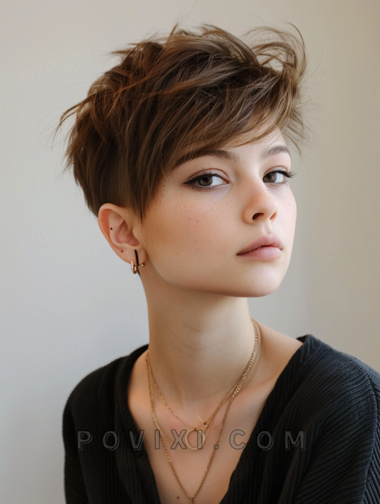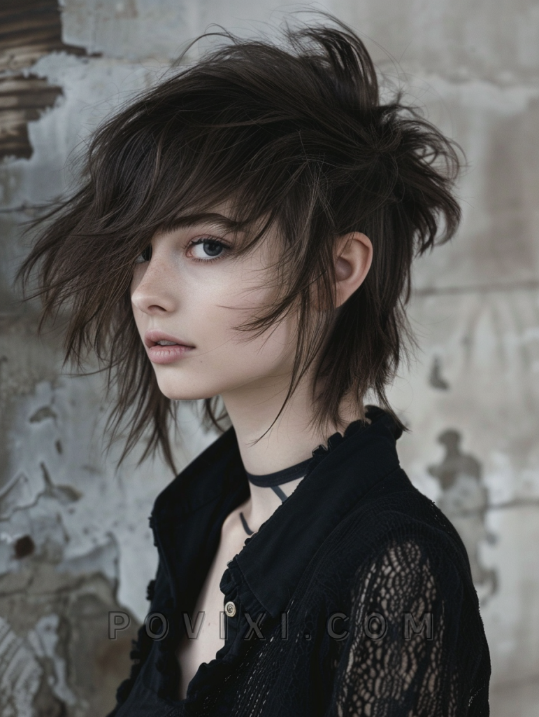 Incorporate an artistic twist with the short sketch wolf cut, characterized by sharp, angular cuts that create a sculpted look. This style is especially suitable for adventurous personalities looking to make a statement at creative events or in artistic professions.