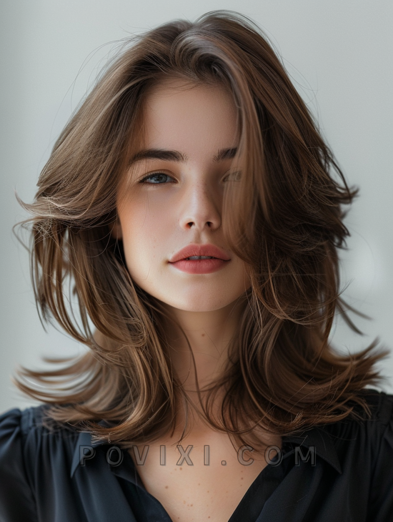 Medium-length hair gets a fresh update with this wolf cut variation, featuring balanced layers that offer movement and versatility. It’s a fantastic choice for any face shape, adaptable to both casual and formal settings.