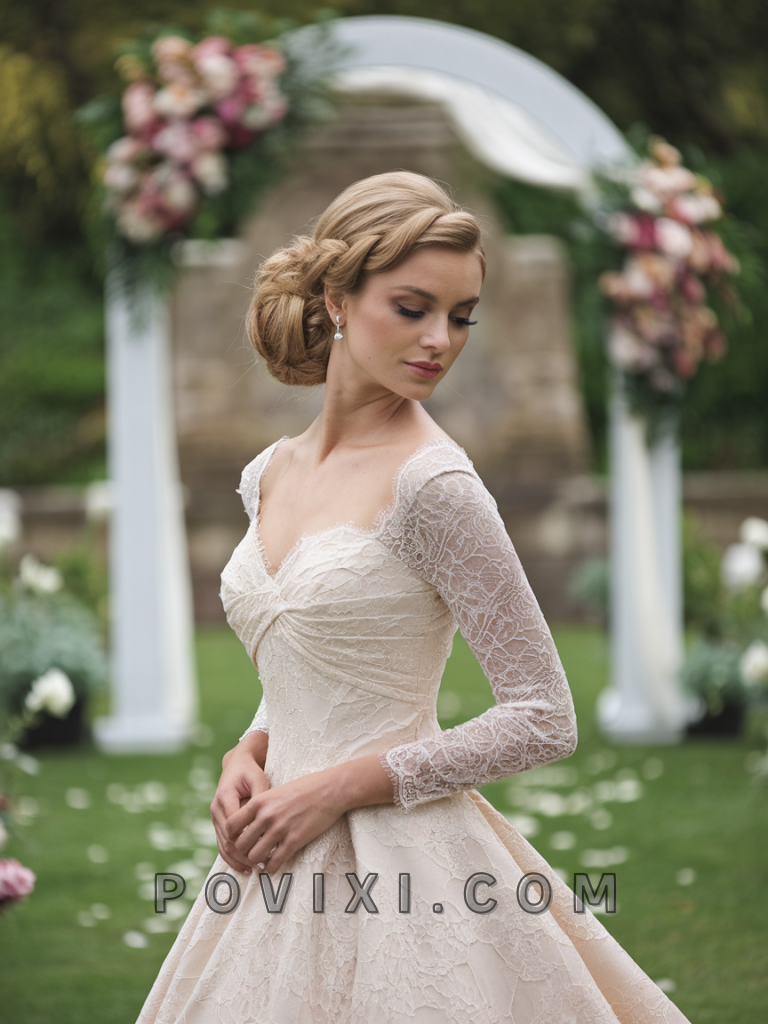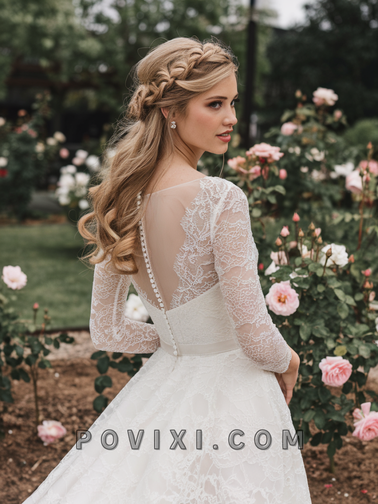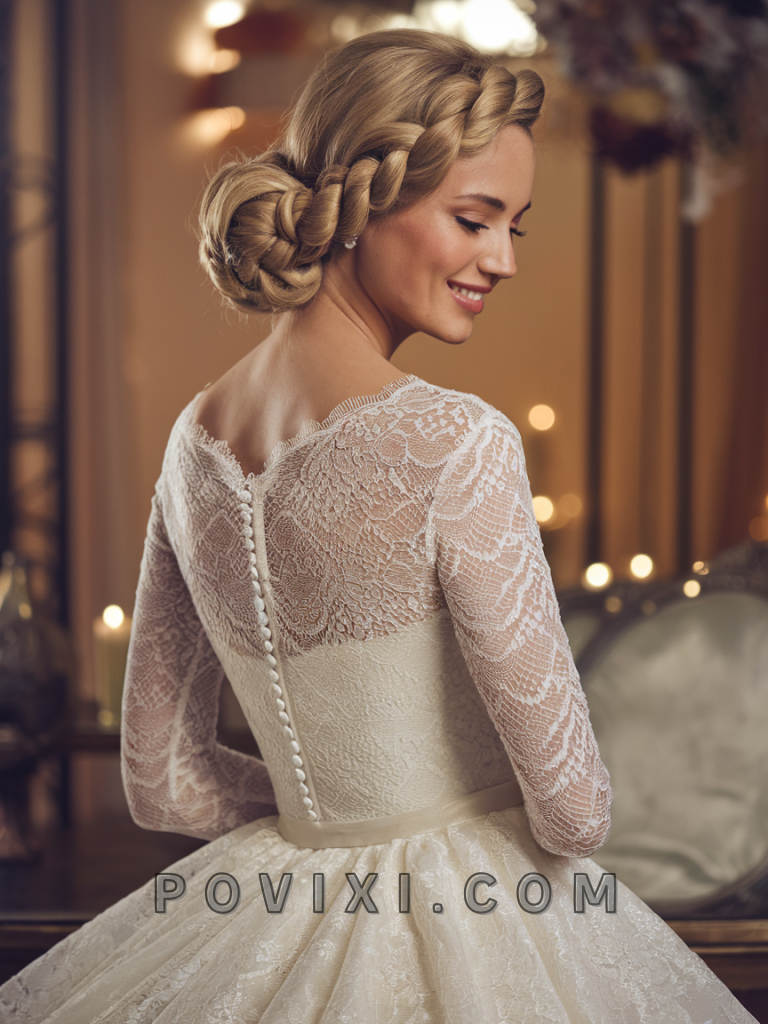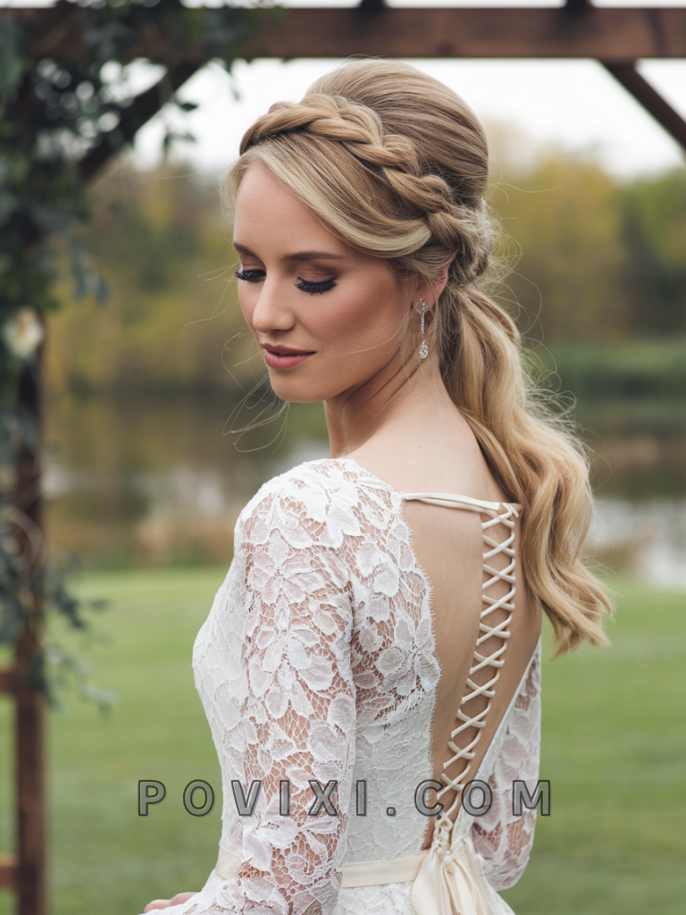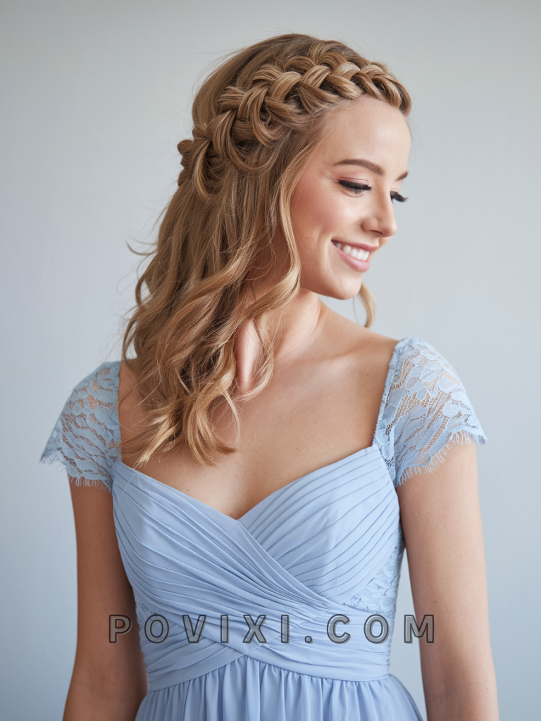 For those who adore the boho aesthetic, the half-up twisted crown is a dream come true. This style combines loose waves with twisted sections of hair pinned into a crown-like shape, making it perfect for long hair or medium-length locks. Its versatility allows it to shine at outdoor weddings, particularly rustic or garden-themed events. The soft twists suit round and oval faces and complement light-colored dresses beautifully.