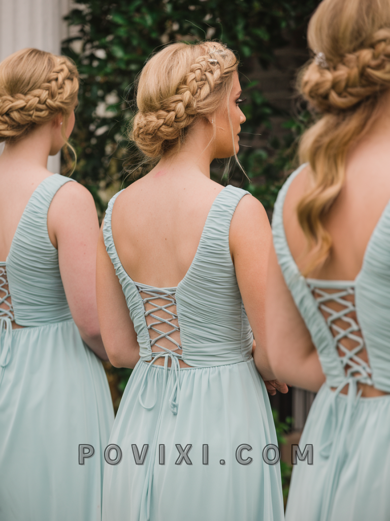 The braided halo is a regal and graceful choice that wraps your hair into a crown of braids. It’s a versatile option for bride or bridesmaids, perfect for both casual and formal weddings. This style works well for medium hair or long hair and suits all face shapes. Add delicate flowers or jewels for a charming finish.