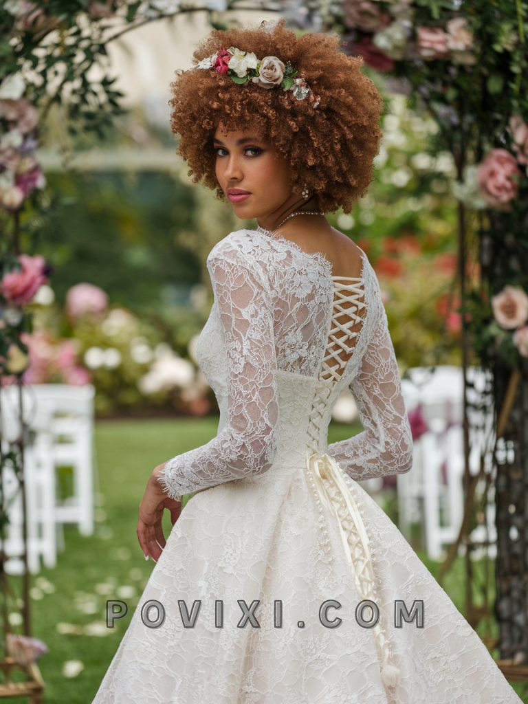 Celebrate your natural beauty with a voluminous curly afro adorned with a floral crown. This stunning style is ideal for brides or bridesmaids with curly hair or afro-textured hair. It’s a striking option for boho or garden weddings and works beautifully with off-shoulder dresses.