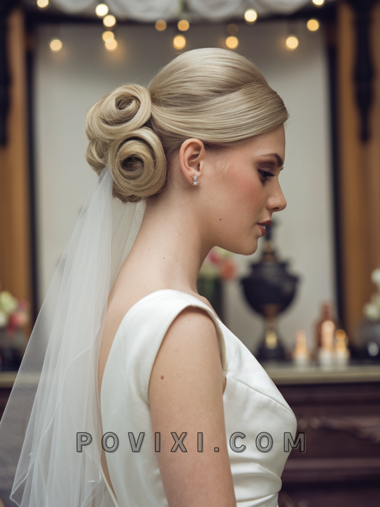 It’s especially flattering for oval or heart-shaped faces and works beautifully with a veil or statement earrings. This look is ideal for evening ceremonies or formal receptions, and its understated elegance ensures you’ll stand out without looking overdone.