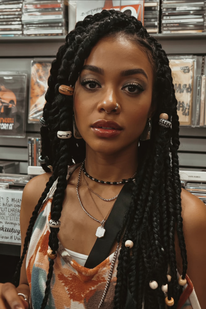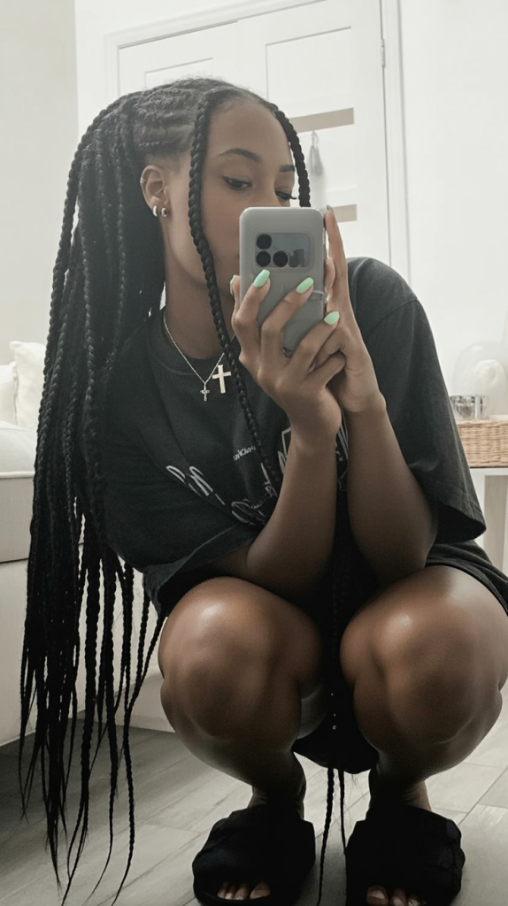 This style is most suitable for women who want their braids to pop without much effort. The accessories bring it to life, adding a trendy touch to the 2025 braids. It’s a season-changer, an easy-cleaner, an all-season beauty — proof that proper details make the difference.