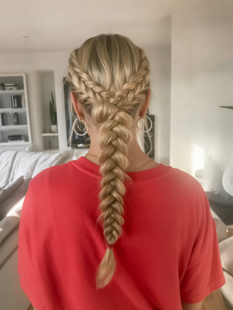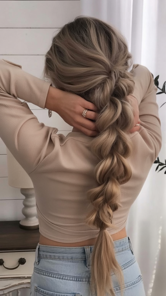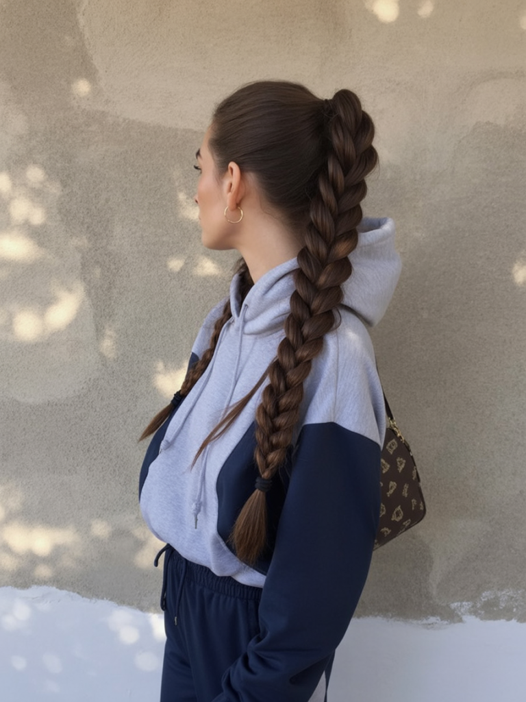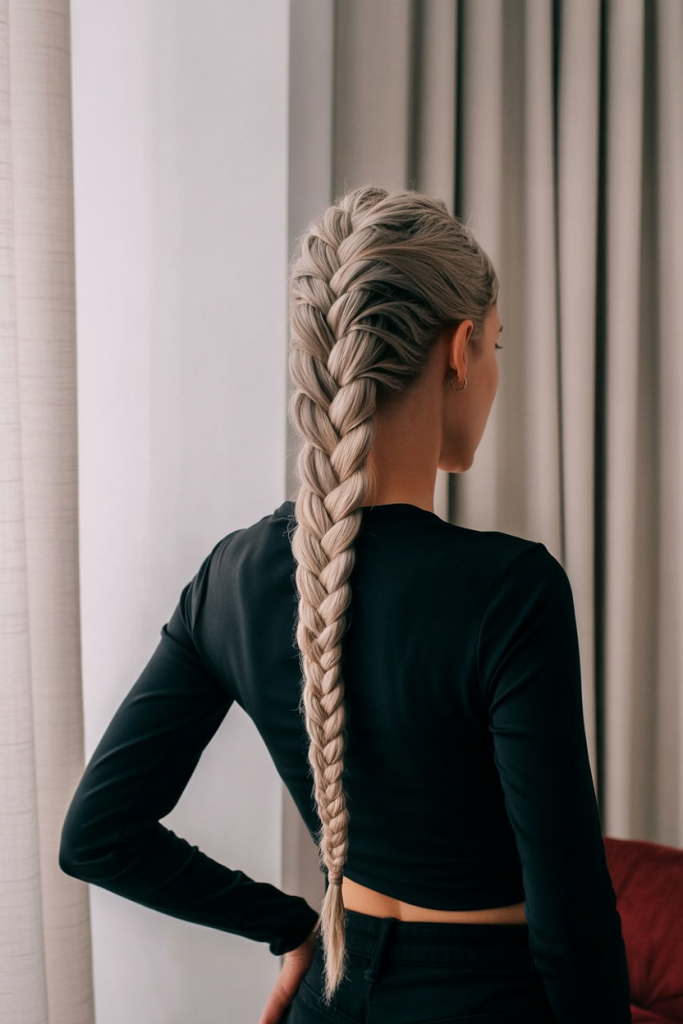 This hairstyle works particularly well for women with straight or thick hair, who want an effortless look that will keep their hair looking tidy throughout the day. It has a modern 2025 update, chunky size, is easy to maintain, and doesn’t need daily styling. It’s the kind of braid that can be worn with both casual and dressy outfits, so it’s endlessly versatile.