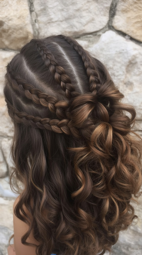 There are few styles that are more magical than a half-up braided crown with cascading curls. Elegant without being overly polished, this style combines structured braids with soft waves. This style is very romantic and it is perfect for special dinners, special occasions, or whenever you just want to feel beautiful in the winter season.