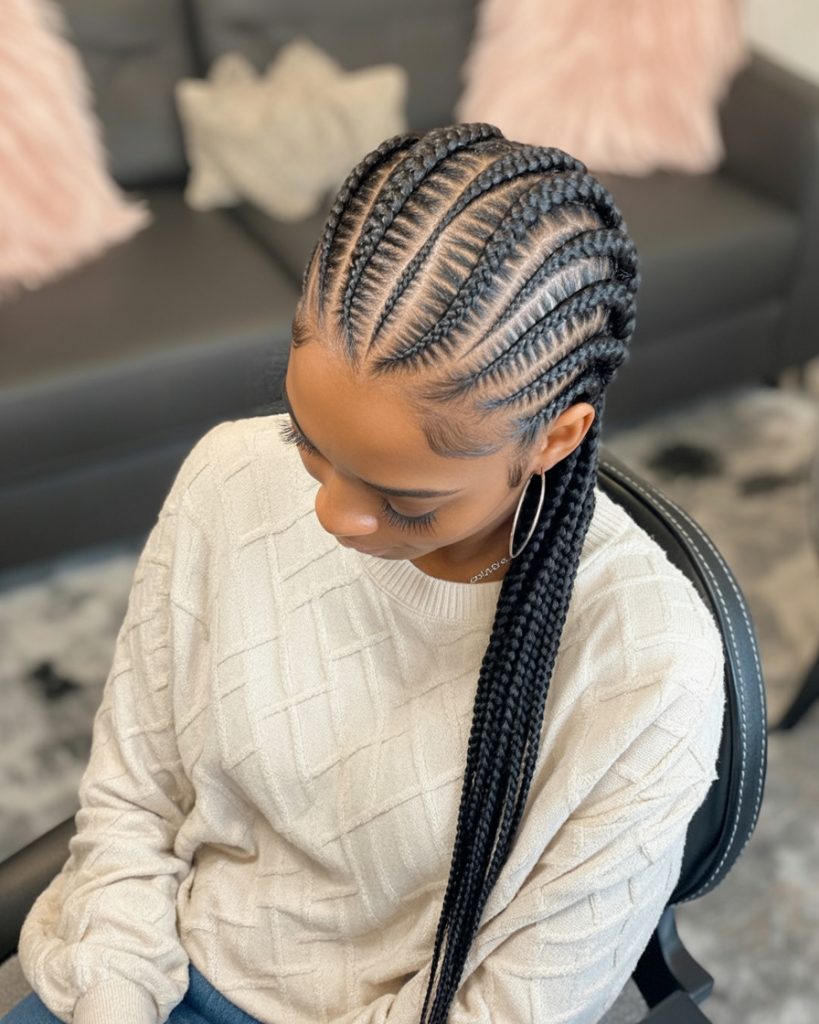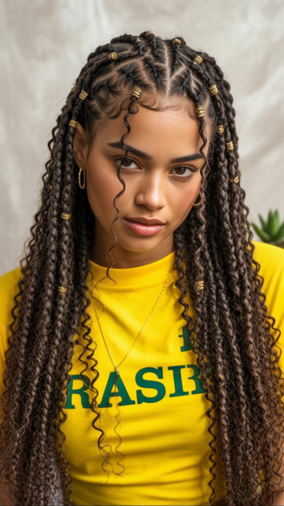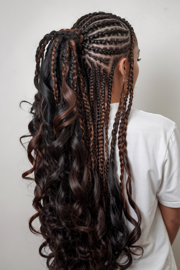 This is the one that will work throughout 2025. The neat cornrows create a protective base, and the cascading curls bring in the movement and fun. It’s ideal for women who prefer a braid style that can be worn during the day for casual occasions and at night for a special night out without having to modify the hairstyle much.