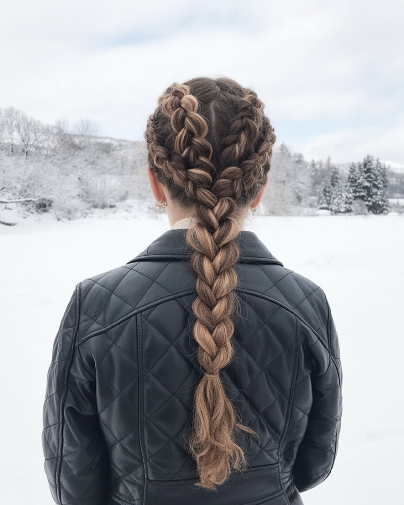This type of braid is particularly flattering for women with long, straight hair. It gives the face a gentle frame and interesting detail in the back. From coffee runs in the morning to outings after work, it’s a versatile option that seamlessly transitions through the day and quickly becomes a staple in winter 2025.