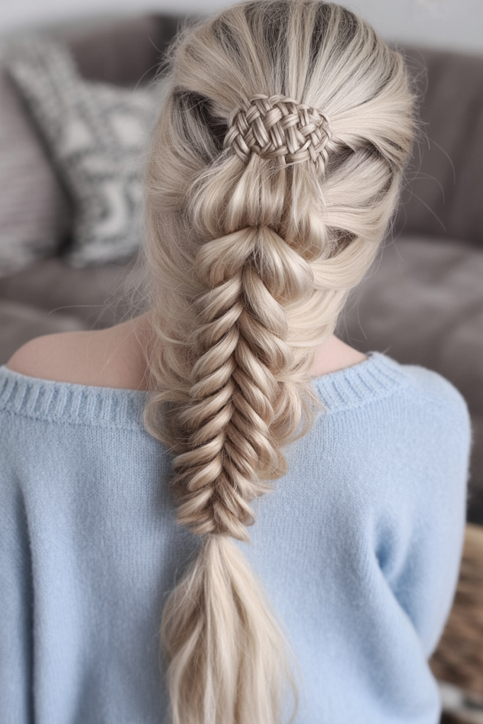 Especially flattering for women with long hair who like to try out elaborate styles. The different sizes of braids add depth and ensure it never appears flat. It’s a winter braid that functions as a fashion statement and art at the same time, looking out of the ordinary but keeping your hair safe from the elements.