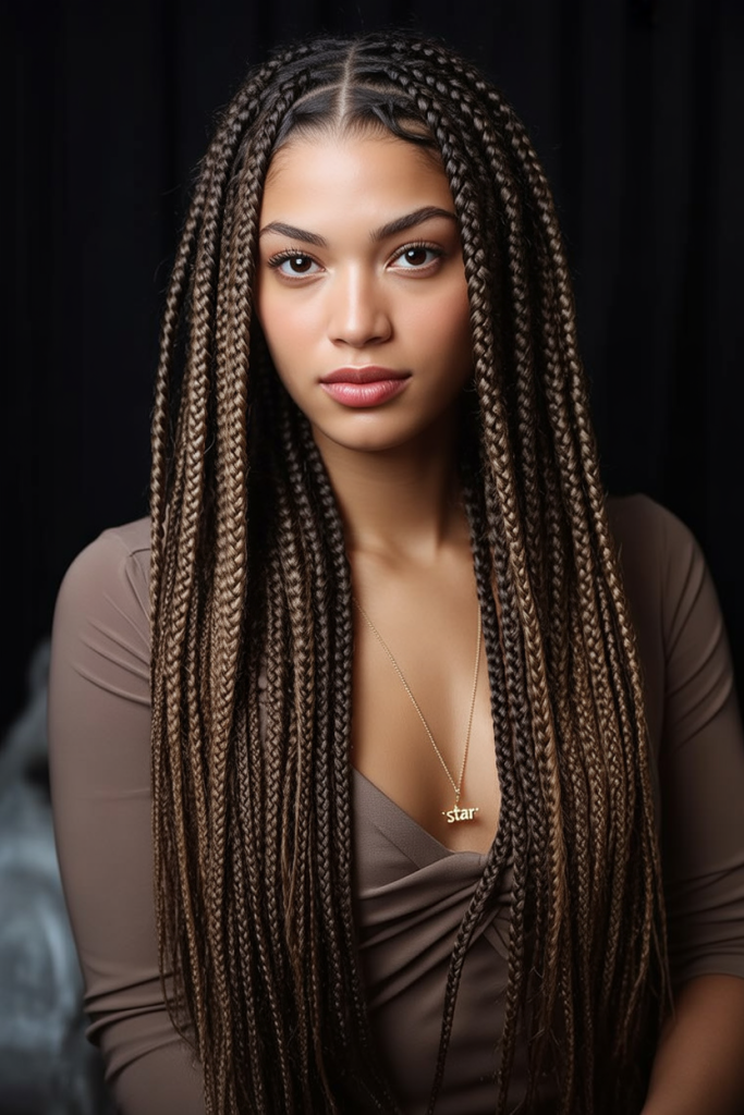 Box braids are never out of fashion, but with ombre tones they are taken to the next level. The subtle gradient from dark roots to lighter tones adds depth and dimension, giving the appearance a fresh and sophisticated feel. It’s a style of braid that oozes confidence and radiance — a true winter-ready classic with a twist.